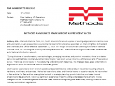 METHODS ANNOUNCES MARK WRIGHT AS PRESIDENT & CEO