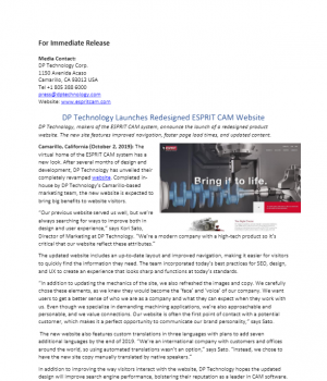 DP Technology Launches Redesigned ESPRIT CAM Website