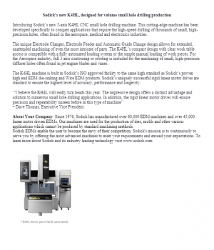 Sodick Introduces K4HL Small Hole Production EDM Drill