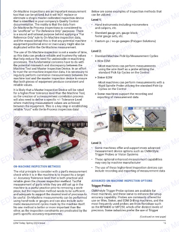 Feature Article  On-Machine inspections are an important measurement   Below are some examples of inspection methods that