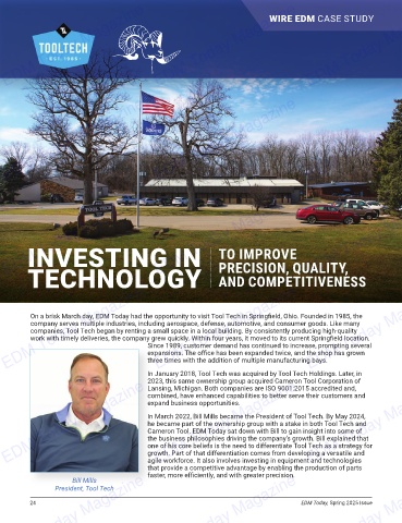 On a brisk March day, EDM Today had the opportunity to visit Tool Tech in Springfi eld, Ohio. Founded in 1985, the