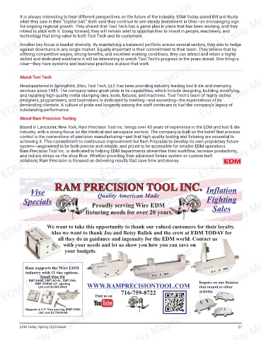 Another major benefi t of Tool Tech’s workhold- It is always interesting to hear different perspectives on the future of the industry. EDM Today asked Bill and Rusty