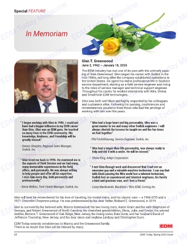 ing of Glen Greenwood. Glen began his career with Sodick in the