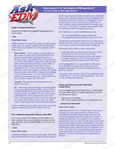 Virgin vs Regenerated Resin for subsequent EDM operations as follows:
